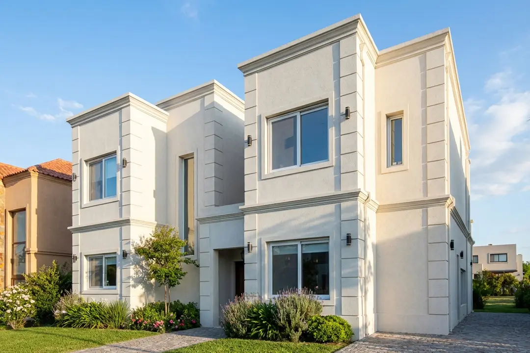 Las casas cuentan con un excelente nivel de calidad no sólo como explicamos en la pregunta anterior, sino también en el nivel de acabados y presentación, todas tienen paredes con acabados en yeso, pisos de porcelanato, griferías FV, sanitarios Ferrum o Roca, calefacción central por radiadores de Peisa, vidrios DVH, y están hechas con los productos líderes del mercado en materiales, electricidad, cañerías, y todo cuanto contengan las mismas.